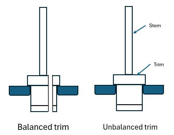 Unbalanced trims are more tolerant of particulates. The seals in balanced trims can wear quickly in dirty or slurry applications.