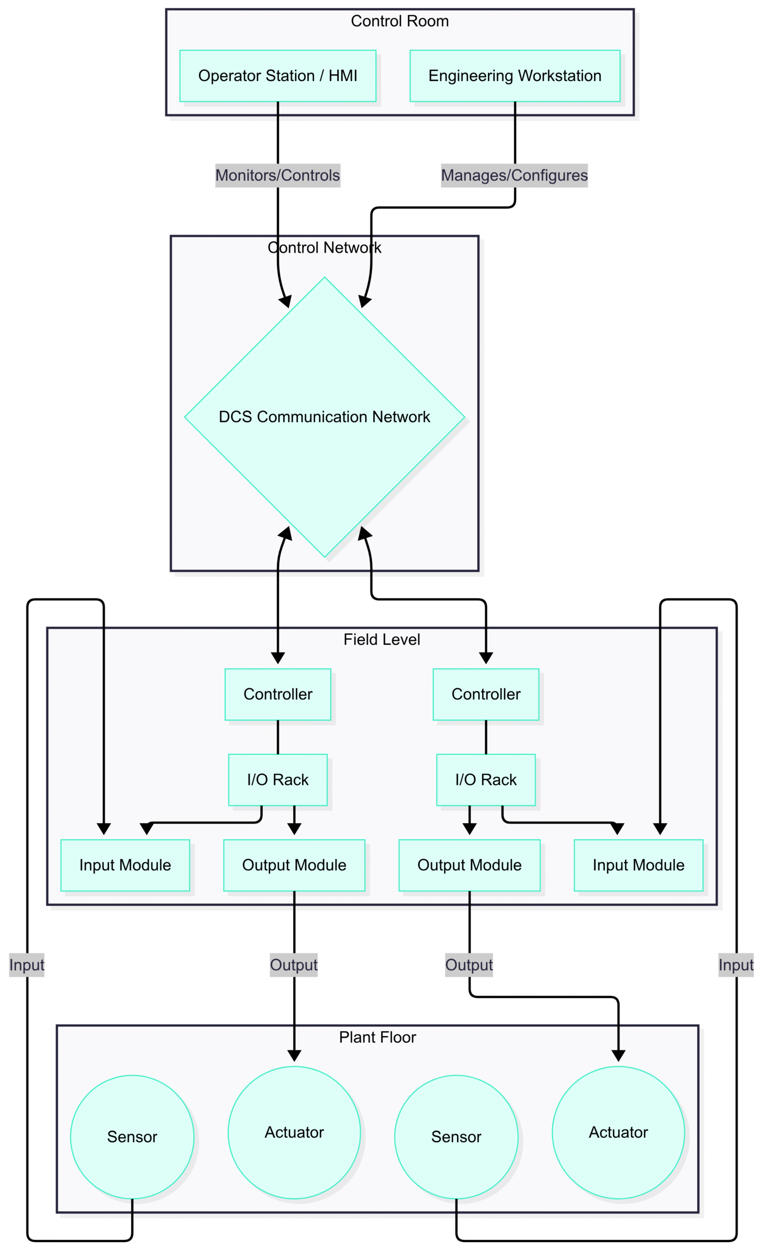 Operator Station (HMI): The Human-Machine Interface where operators monitor and interact with the process.