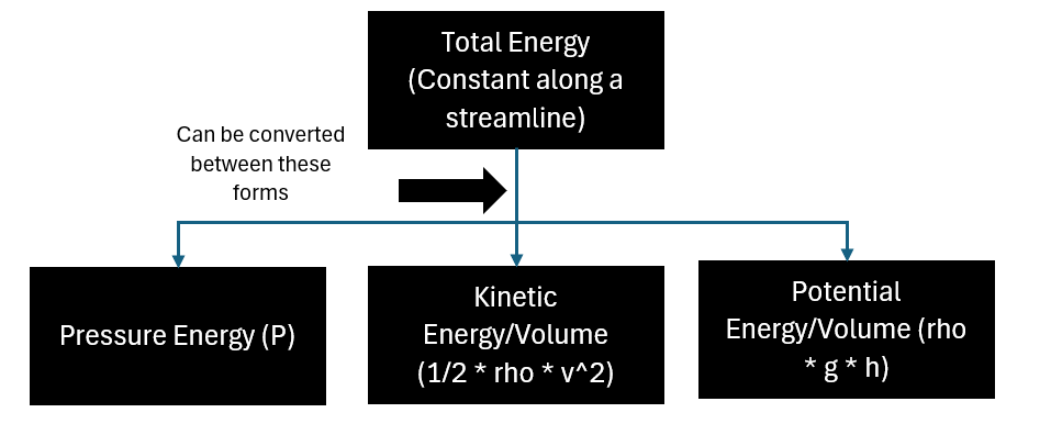 This block diagram illustrates the conservation of energy aspect of Bernoulli’s principle.